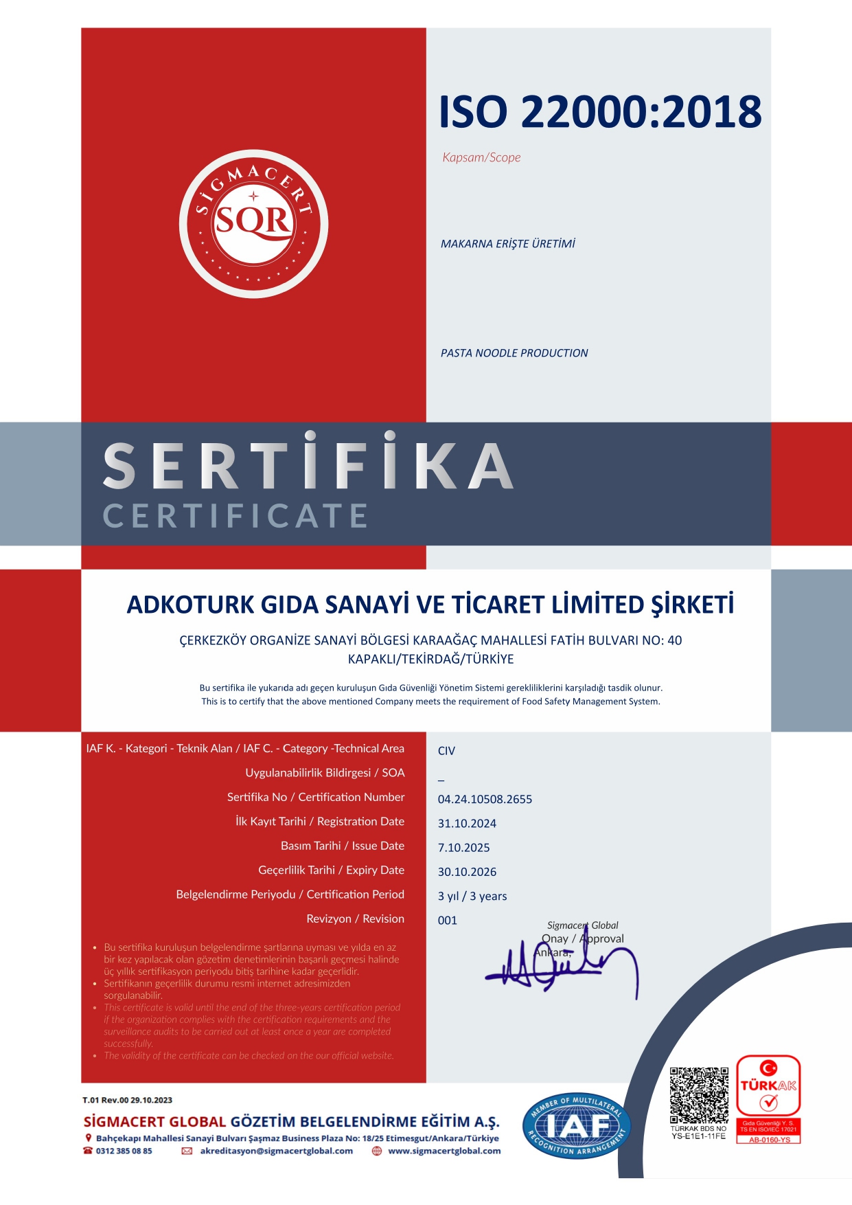 ISO 22000:2018 Gıda Güvenliği Sertifikası